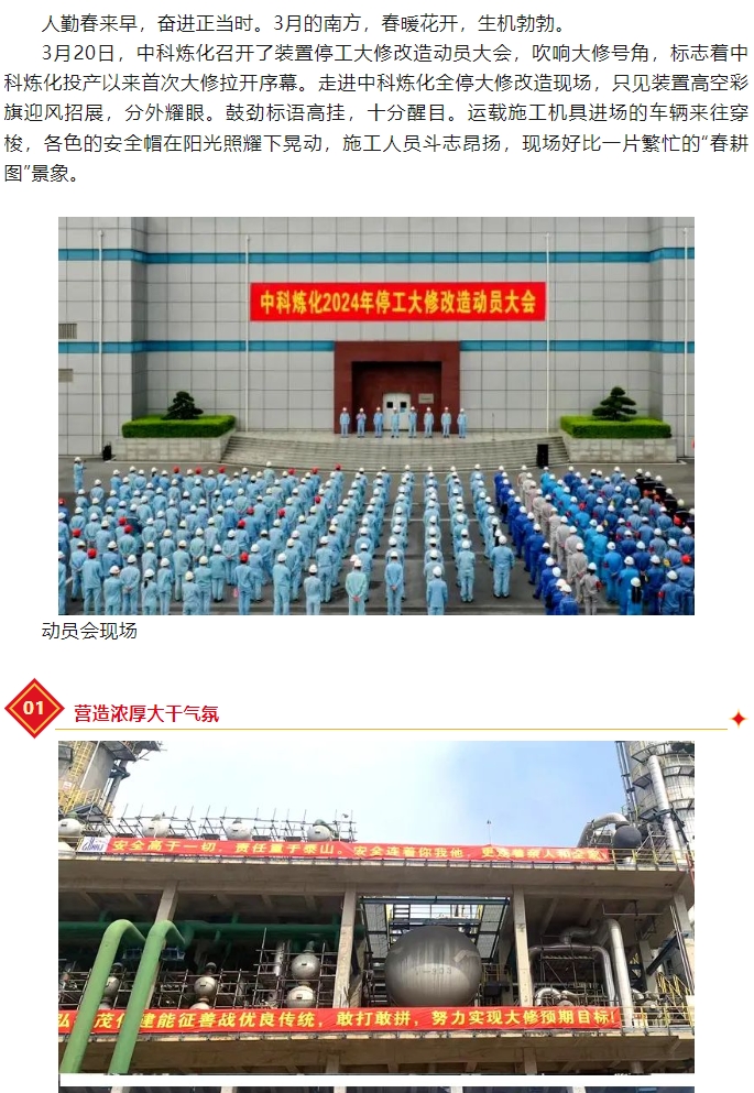 人勤春來(lái)早,奮進(jìn)正當(dāng)時(shí)——走馬中科煉化2024年全停大修改造現(xiàn)場(chǎng)