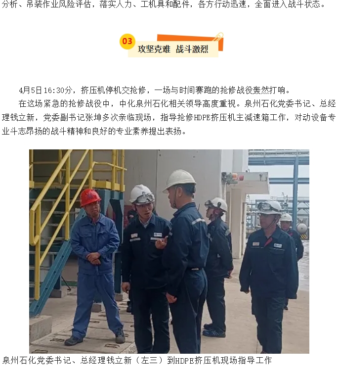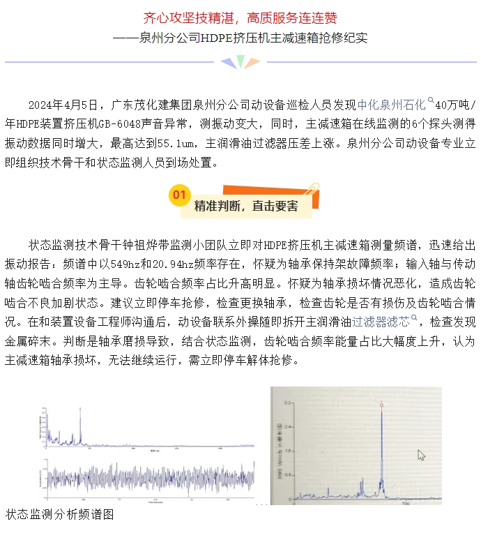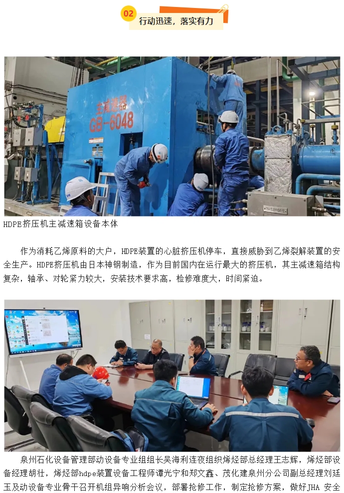泉州分公司HDPE擠壓機主減速箱搶修紀實