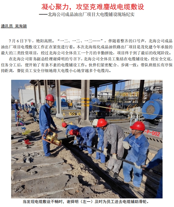 北海公司成品油出廠項(xiàng)目大電纜鋪設(shè)現(xiàn)場紀(jì)實(shí)