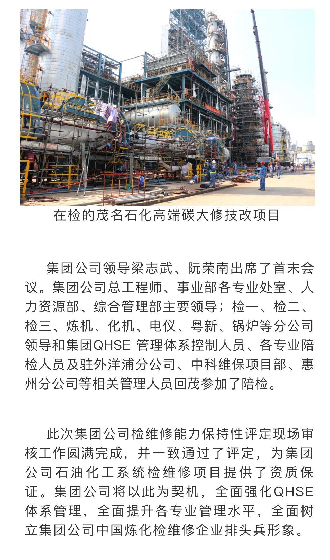 集團(tuán)公司檢維修能力保持性評(píng)定現(xiàn)場(chǎng)審核工作圓滿(mǎn)完成