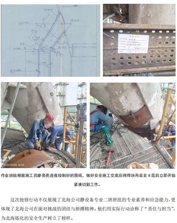 臺(tái)風(fēng)前夕!北海公司對(duì) 1#催化再生循環(huán)斜管貼焊搶險(xiǎn)