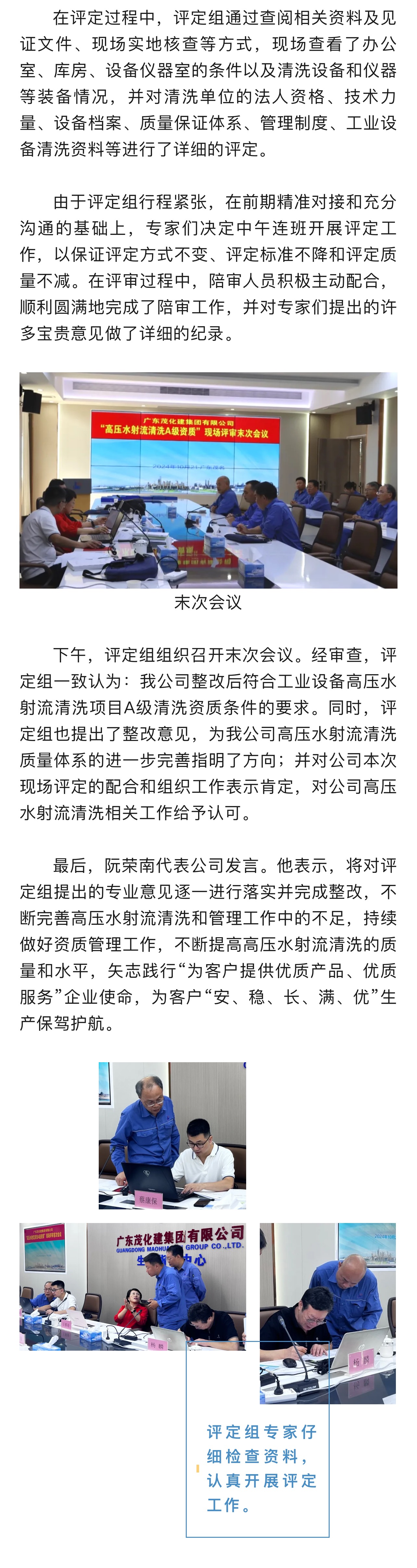 集團(tuán)公司順利完成工業(yè)設(shè)備高壓水射流清洗A級(jí)清洗資質(zhì)現(xiàn)場(chǎng)評(píng)定