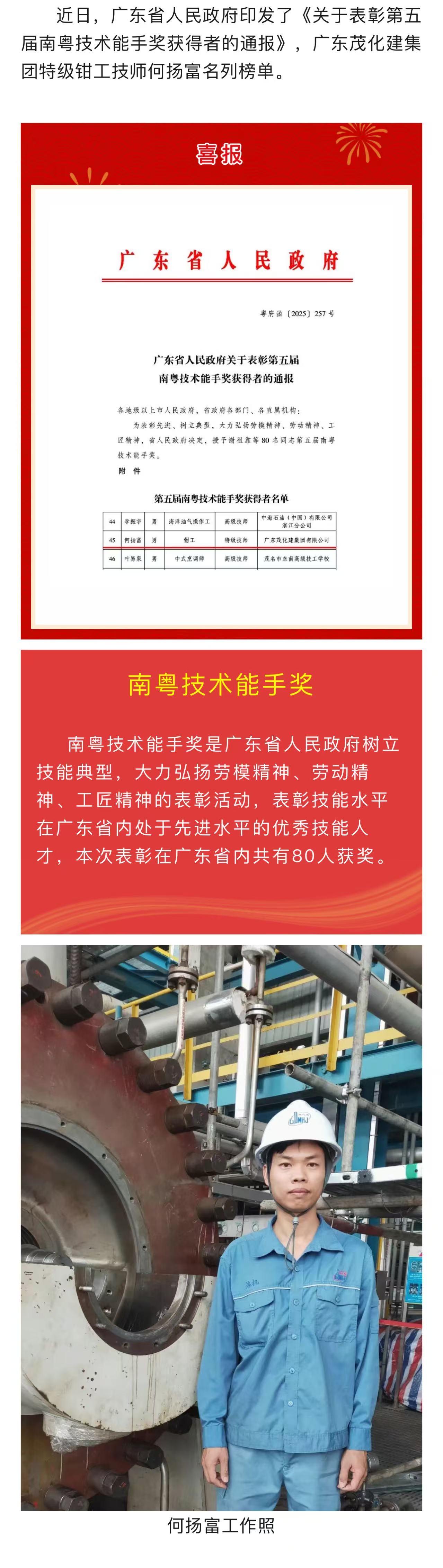 喜報 | 何揚富被授予第五屆“南粵技術(shù)能手獎”