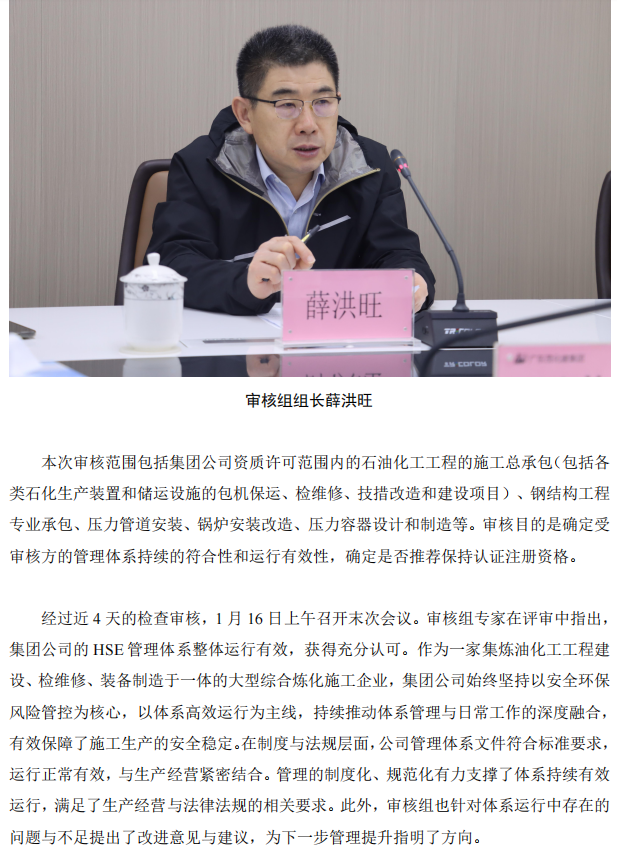集團(tuán)公司順利通過 HSE 管理體系年度監(jiān)督審核